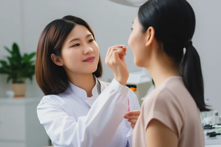 通常先进行表面麻醉,减轻不适。医生使用细针或钝针,精准将玻尿酸注射至唇珠及周边区域,边注射边塑形,确保对称自然。