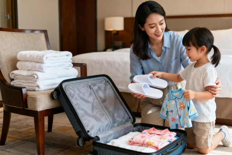 儿童的抵抗力较弱,建议自带便携式床单、被套和专属玩具。使用浴缸前务必彻底清洁,或者选择淋浴。为孩子准备专属的洗漱用品,避免使用酒店提供的可能含有过敏成分的产品。